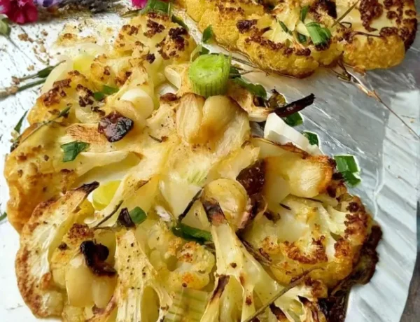 Coliflor grillada con ajo asado y aceite trufado