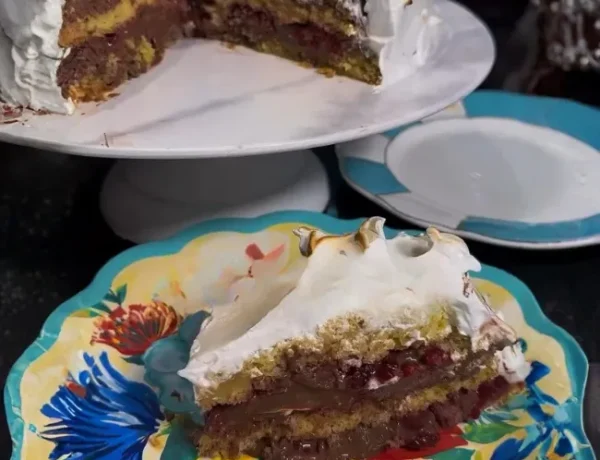 Postres / Recetas / Recetas Torta de bizcocho con ganache de chocolate, frambuesas y merengue sin azúcar