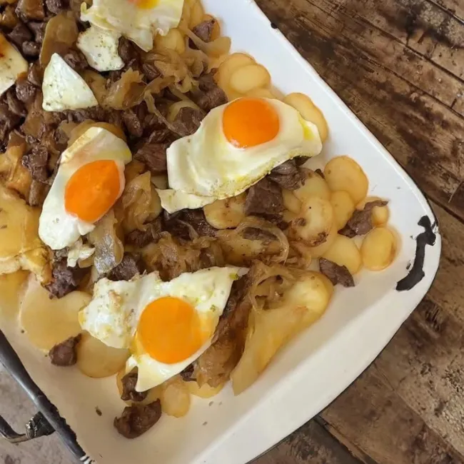 - Importante que la yema esté bien líquida para poder untar las papas y la carne y disfrutar de esta maravilla.