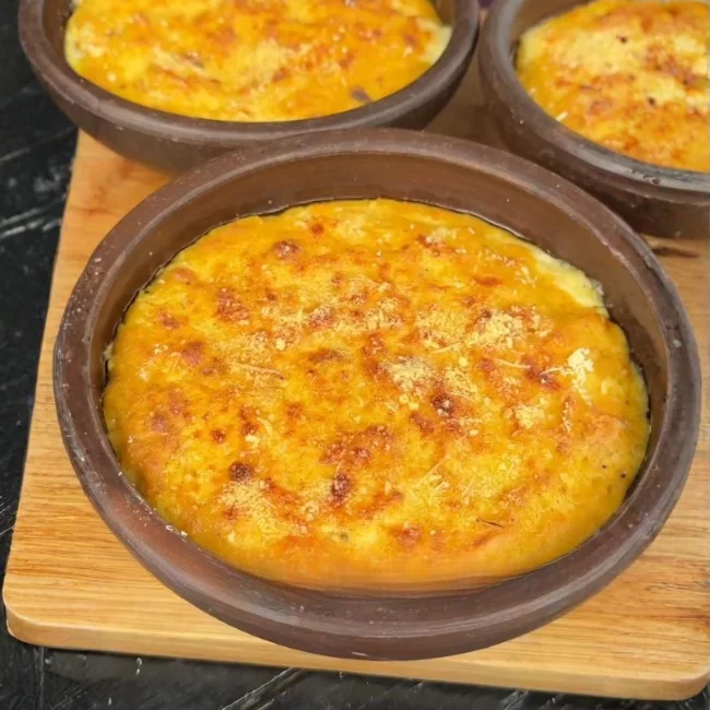 - Rellena los pocillos individuales hasta la mitad con la preparación. Agrega láminas de queso chanco o mantecoso y termina de rellenar los pocillos.