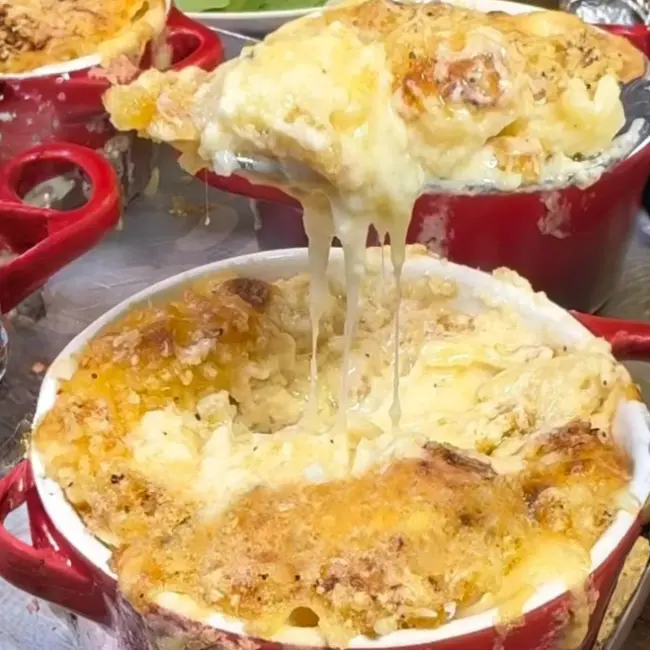 - Poner en pocillos o en una fuente grande para ir al horno. Para la costra o CRUMBLE, mezclar 2 cucharadas de panko o pan rallado + 2 cucharadas de aceite de oliva + 2 cucharadas de queso rallado + 2 cucharadas de aceite de oliva + 1/2 cucharadita de pimienta limón + 1/2 cucharadita de harina mezclar con las manos y hacer una arena y espolvorear sobre la preparación.