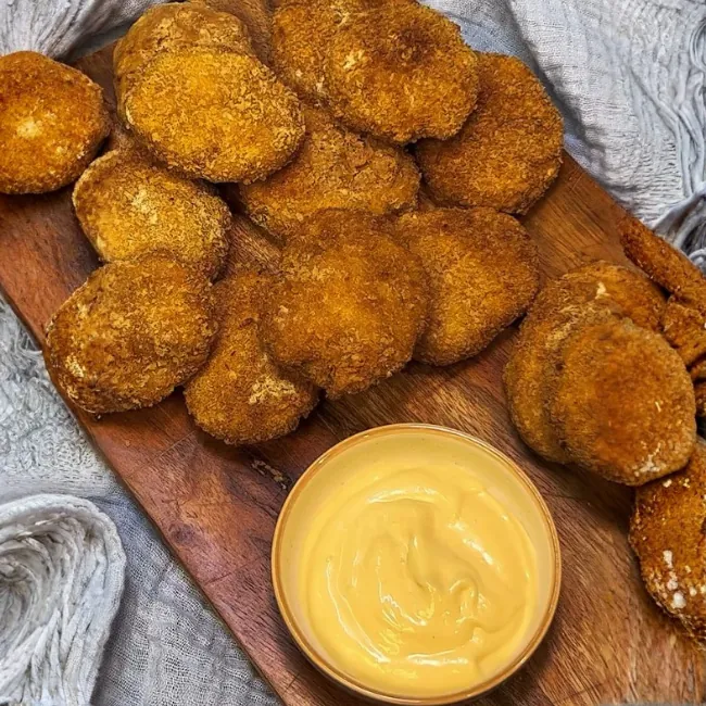 4. Sacar del refrigerador la pasta y poner “montoncitos” en la harina y con las manos enharinadas formar los nuggets. Pasar por huevo y luego pasar por panko.
