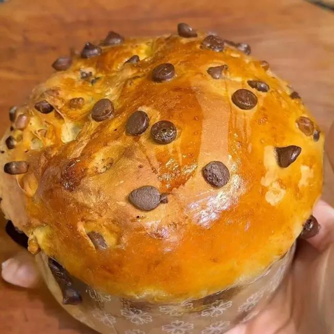 - Desgasificar, poner en la mesada y dividir en 3 partes iguales. Estirar cada trozo con las manos y esparcir los chips de chocolate + los chips de Manjar (optativos) y plegar la masa para ir incorporando con movimientos suaves formando una bola con los chips en su interior.