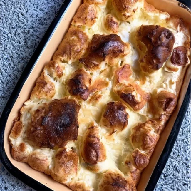 - Aceitar levemente una fuente para el horno y verter la mezcla. Rallar queso , yo le puse queso suave de cabra (puedes usar el que quieras , pero este quedó increíble) llevar al horno a 230 grados hasta que se forman esas ampollas gigantes y se dora.