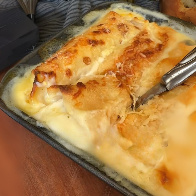 Panqueques de pollo choclo y salsa blanca