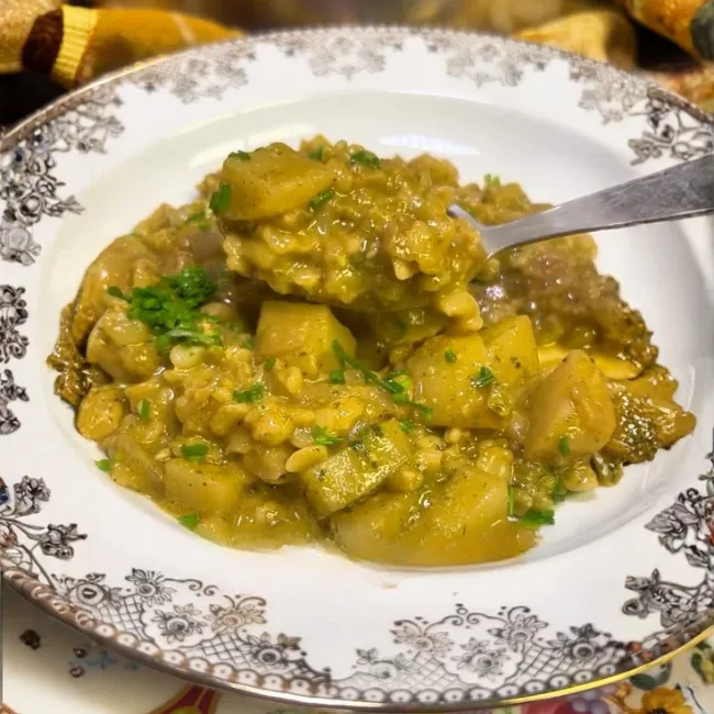 5. Tapar y cocinar 10 minutos. Aplastar con el pisapapas un par de veces para darle cremosidad al caldo.
