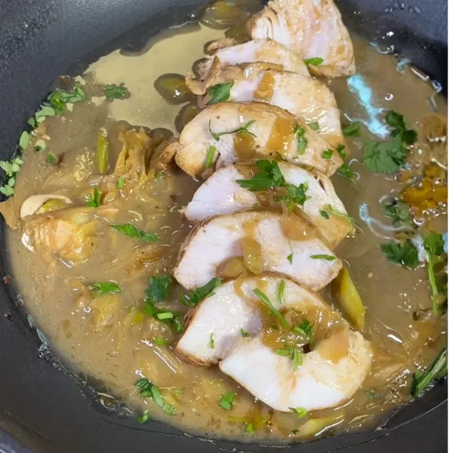 Pechuga de pollo al vino blanco