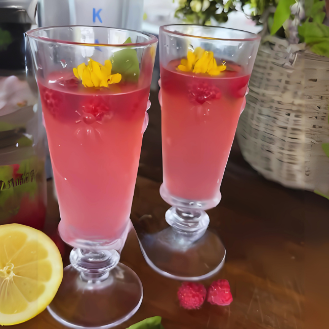 - Poner en un jarro 1 taza de hielo + 1 taza de un buen pisco + 1/2 taza de goma (almíbar que venden en supermercados) + 1/2 taza de jugo de limón de pica o sutil + 1 taza de frambuesas + 1 cucharadita de jengibre fresco picado en bastoncitos + 4 o 5 hojas de menta picadas con la mano.