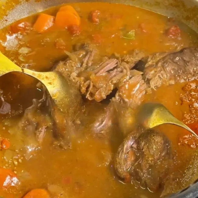 - La carne debe quedar muy tierna, si es necesario, puedes cocinarla algún tiempo más para poder cortarla con la cuchara.