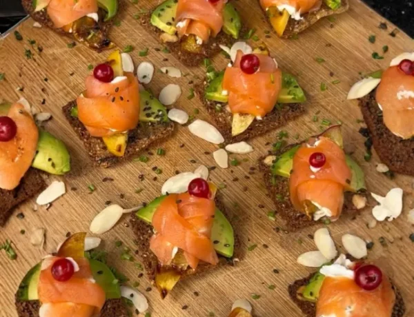 Bruschettas de salmón ahumado y durazno grillado