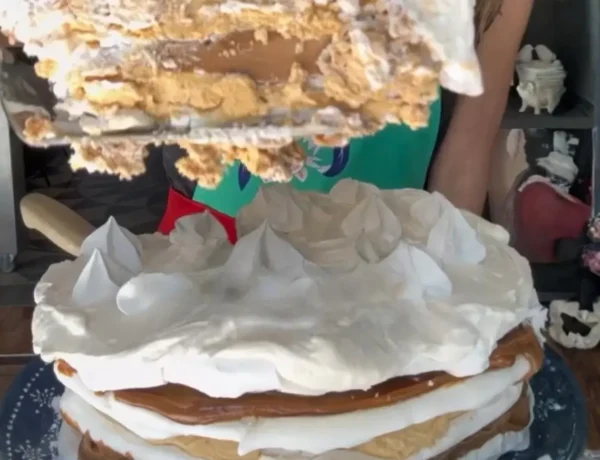 Postres / Recetas / Recetas Torta de bizcocho con ganache de chocolate, frambuesas y merengue sin azúcar