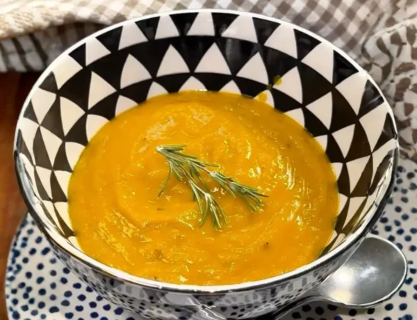 Sopa de zapallo, peras, ajo y jengibre asados