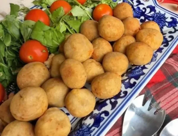 Papas acordeón con salsa de champiñones