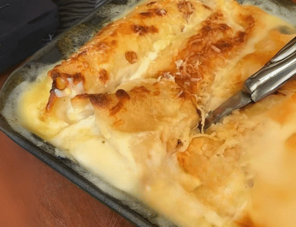 Panqueques de pollo choclo y salsa blanca