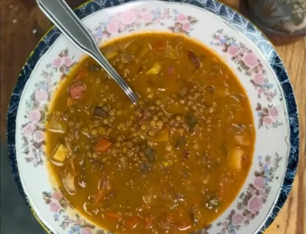 Lentejas con callampas, tocino y chorizo