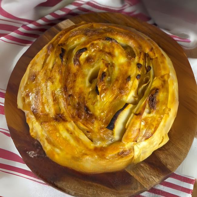 - Poner el mega rollo sobre papel encerado en un molde redondo previamente aceitado.