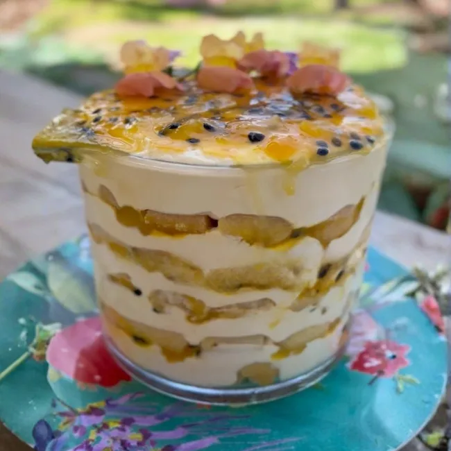 Tiramisú de maracuyá y mango