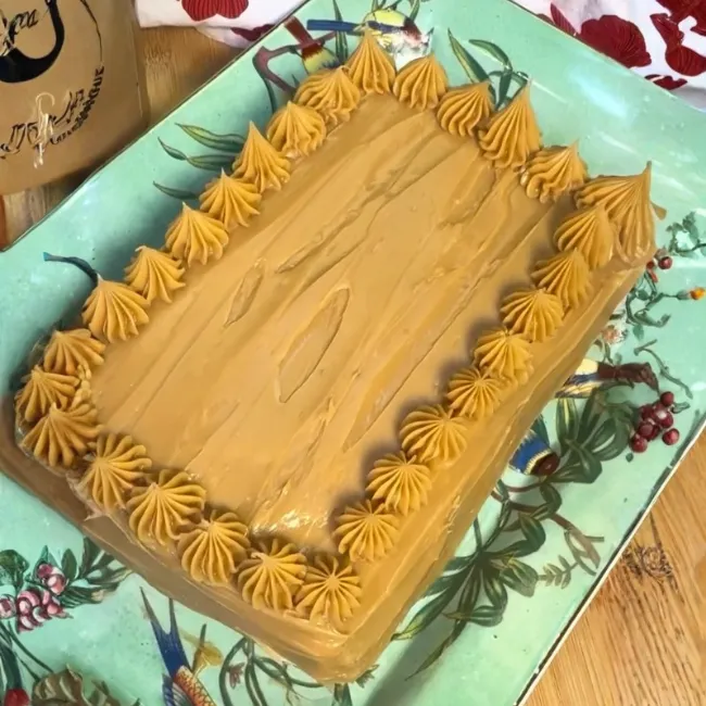 10. Torta con Manjar y con ayuda de una manga pastelera decorar la superficie.